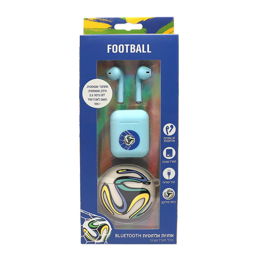 אוזניות בלוטוס צבעוניות עם כיסוי סיליקון כדורגל