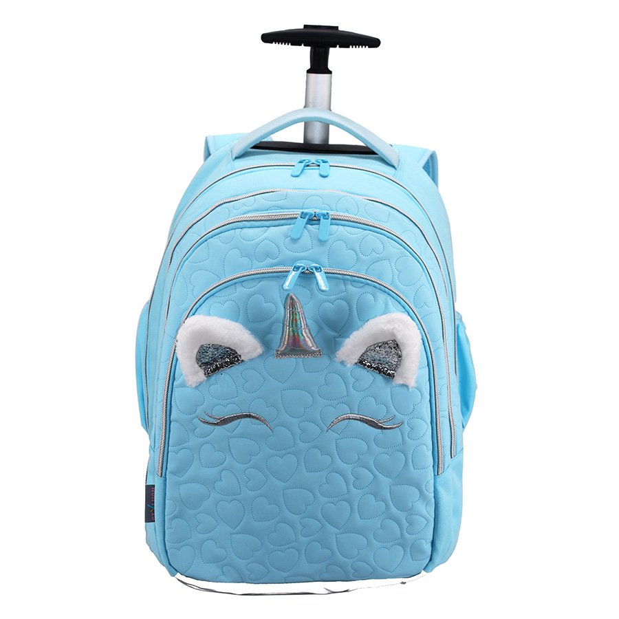 תיק טרולי בית ספר 2ב 1סטיילוש חד קרן לבבות תכלת