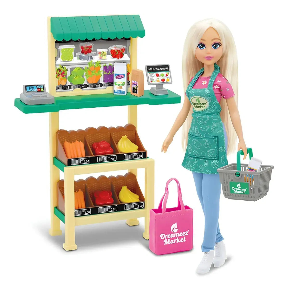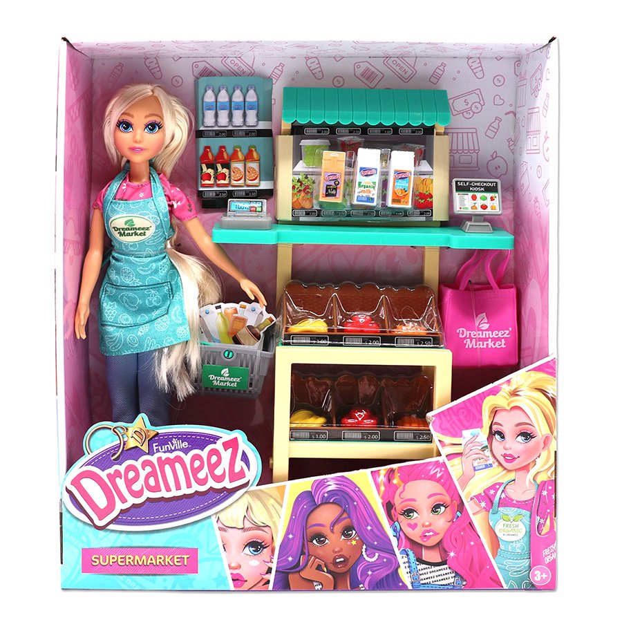 המארז כולל :בובת תווםבוע Dאופנתית עם סינר"פוכעב Mםבוע "Dעגלת קניות ,תיק אופנתי ומוצרים צבעונייםדוכן סופרמרקט עם קופה ותצוגת מדפים